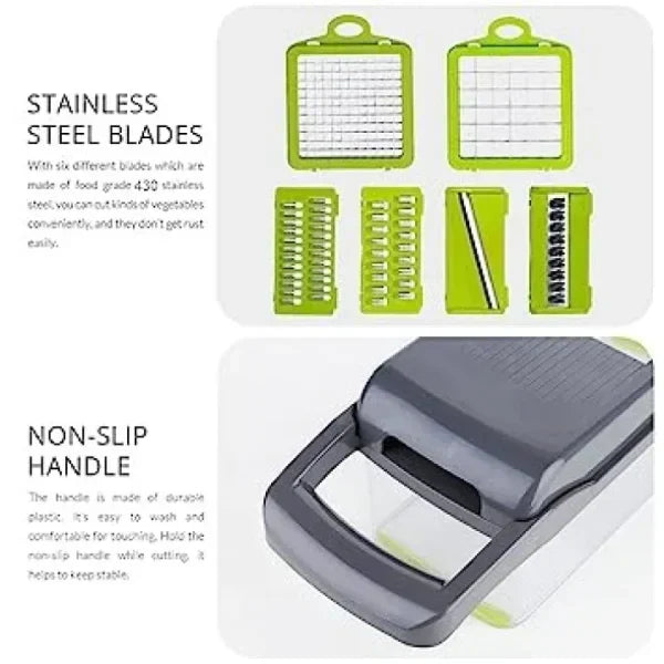 Tired of spending endless hours in the kitchen, meticulously preparing vegetables for your meals? Say goodbye to the hassle and hello to efficiency with our 12-in-1 Multifunctional Mandolin Slicer Cutter Vegetable Chopper. This versatile kitchen gadget is designed to make your food preparation tasks a breeze.