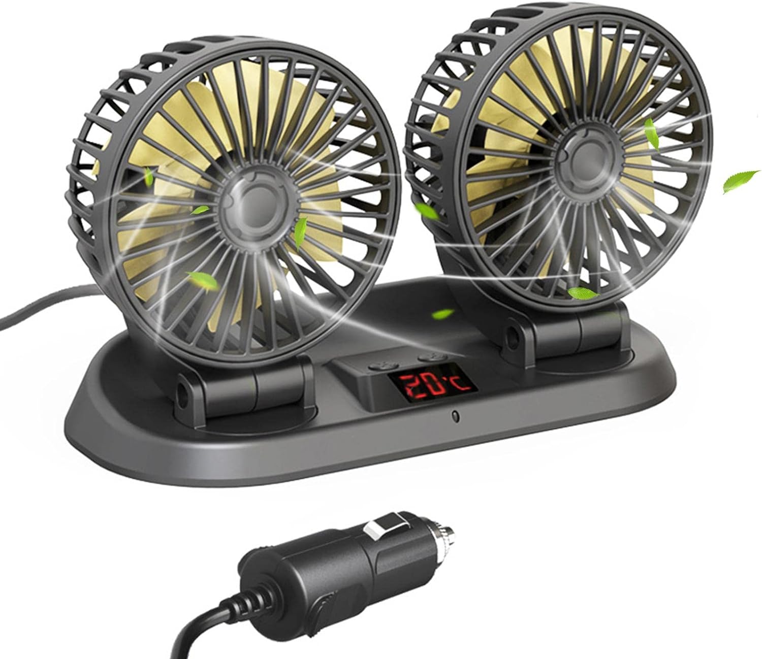 - Convenient design: the dual head electric car fan can work independently, and the main and utility drivers can be adjusted according to their own needs. It can detect the temperature inside the car in real time.